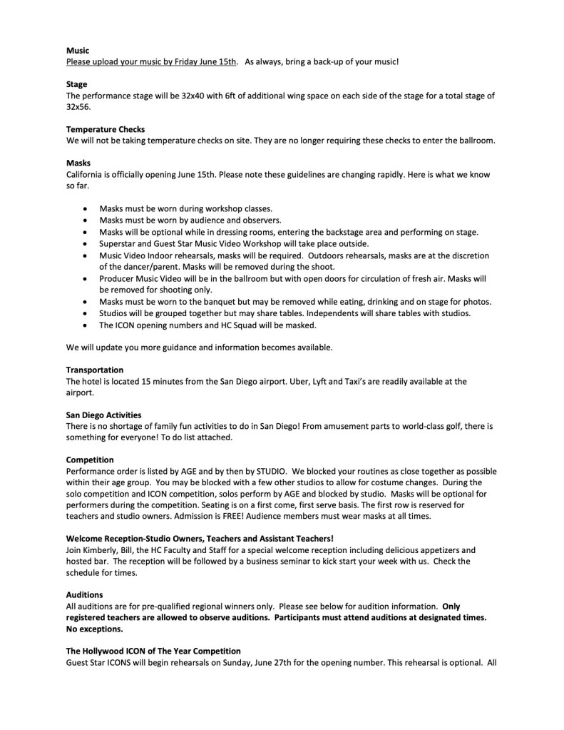 - Studios will have designated dressing room times and must adhere to the block scheduling.