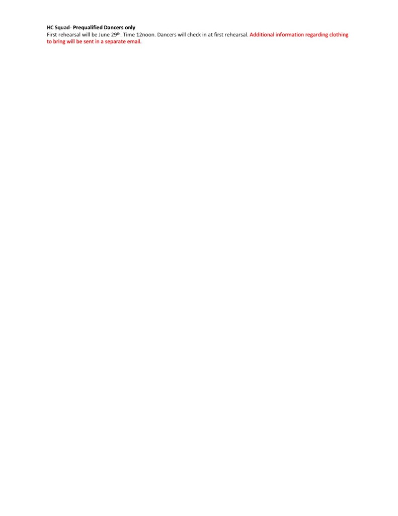 Semi Comp (jojo) Wear: Black Leggings, Red top. white tennis shoes, Accessories with red bows, scarfs, etc. Please have them dance in it to make sure none of their pieces will be distracting.