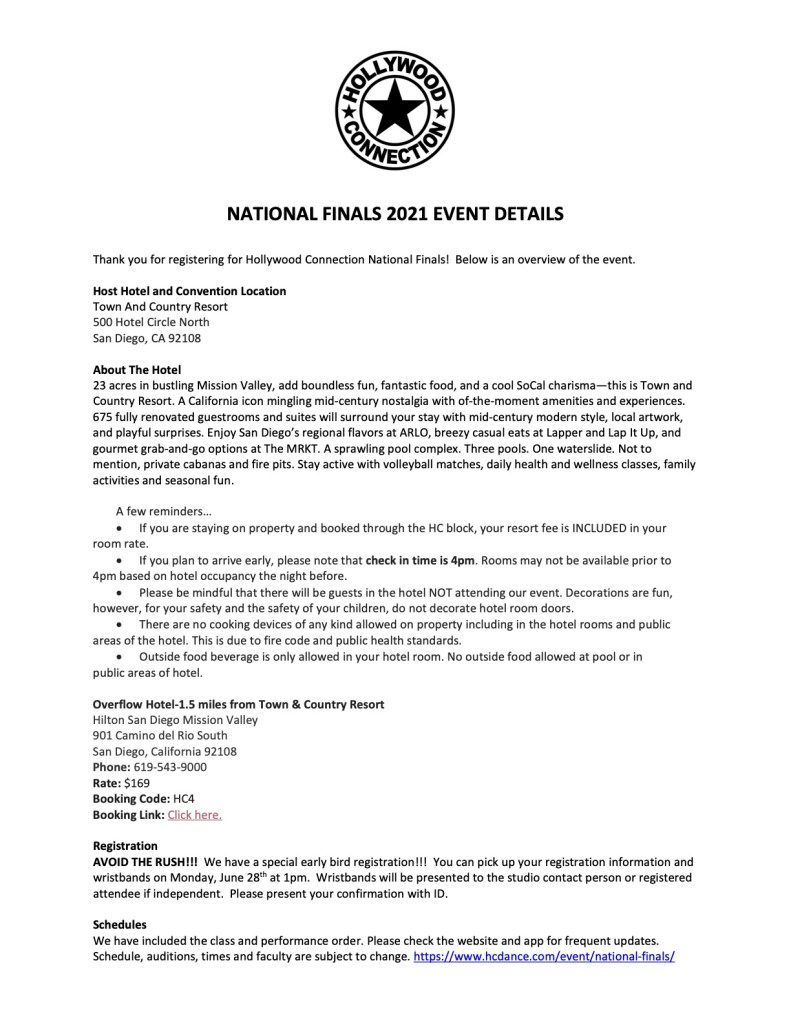 Hollywood Connection has a bunch of Nationals info up! Take a look and book your hotel!